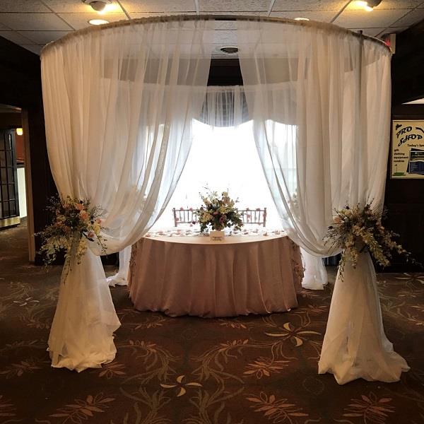 Circular pipe & drape create a 10′ round circle of curtains