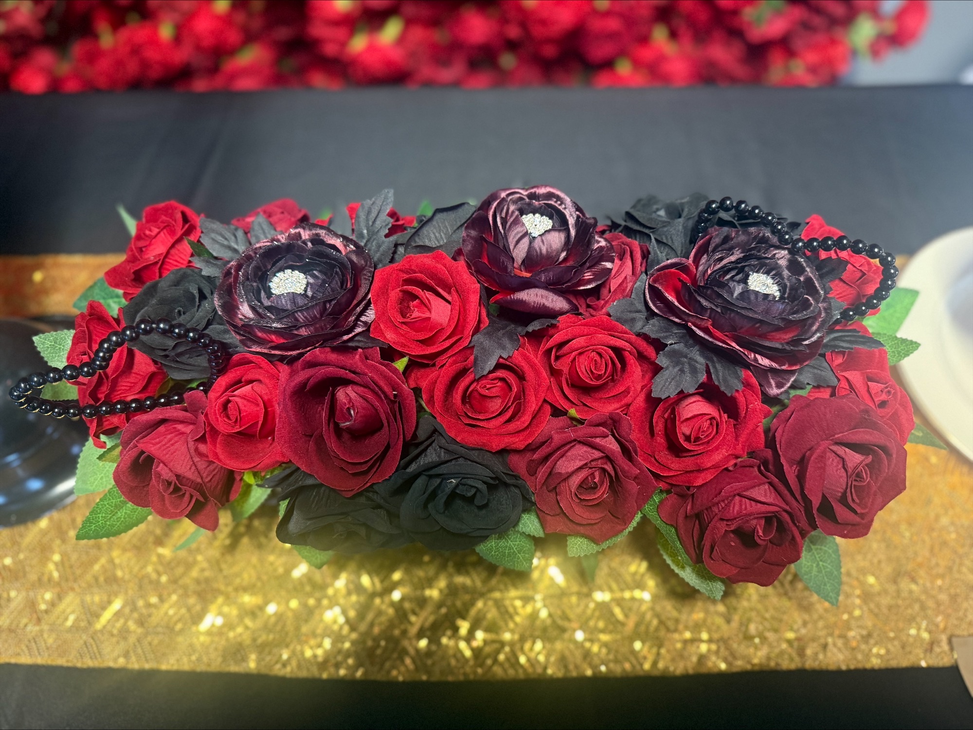 RED/BLACK ROSE CENTERPIECE