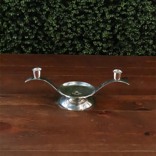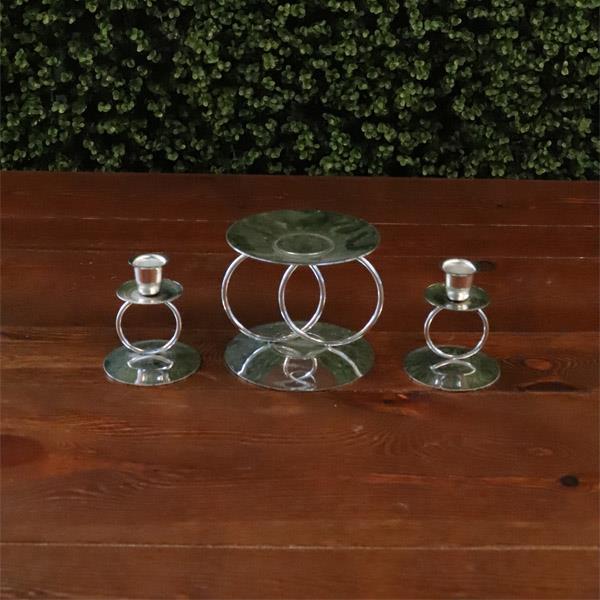 • Holds a 3″ pillar candle in the middle and two tapers on the sides